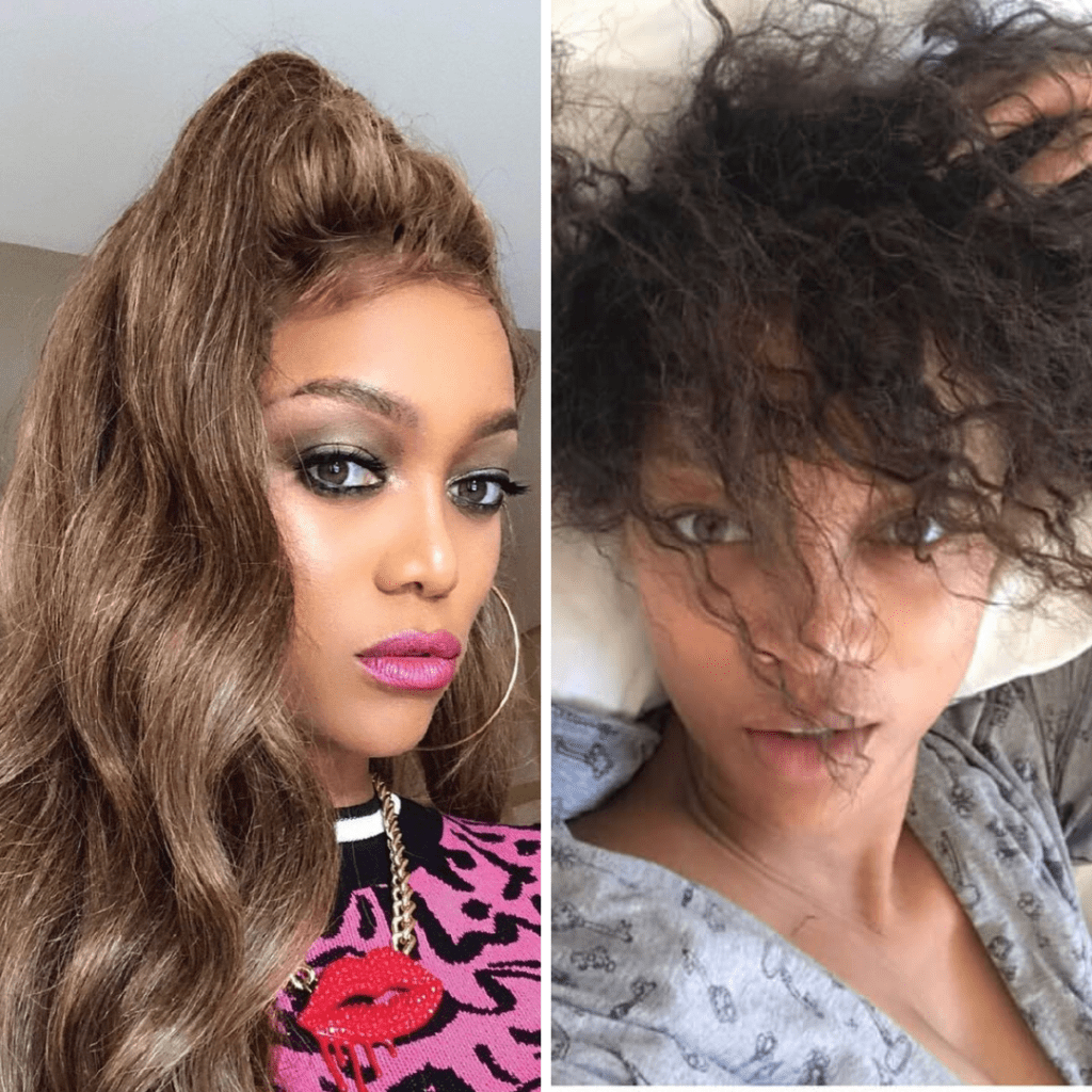 So that meant constantly being in wigs on the shows she’s been a part of and while modeling, which she’s done for most of her adult life. Tyra isn’t a stranger to wigs in her closet. That said, her natural black hair is beautiful, and she loves to rock it while enjoying some downtime.